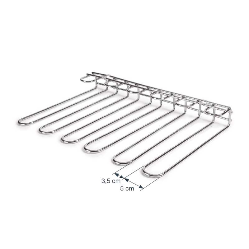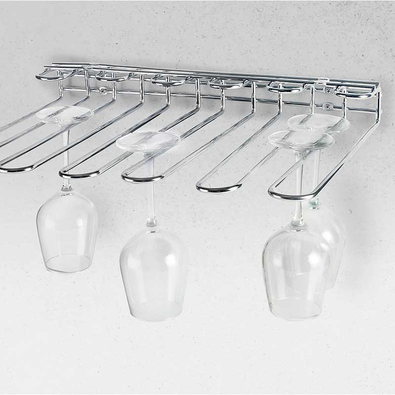 Suporte de tapas de aço cromado que permite economizar espaço e armazenar os cálices de maneira ordenada.