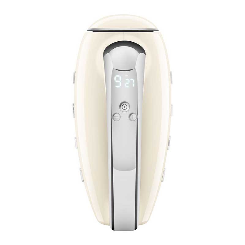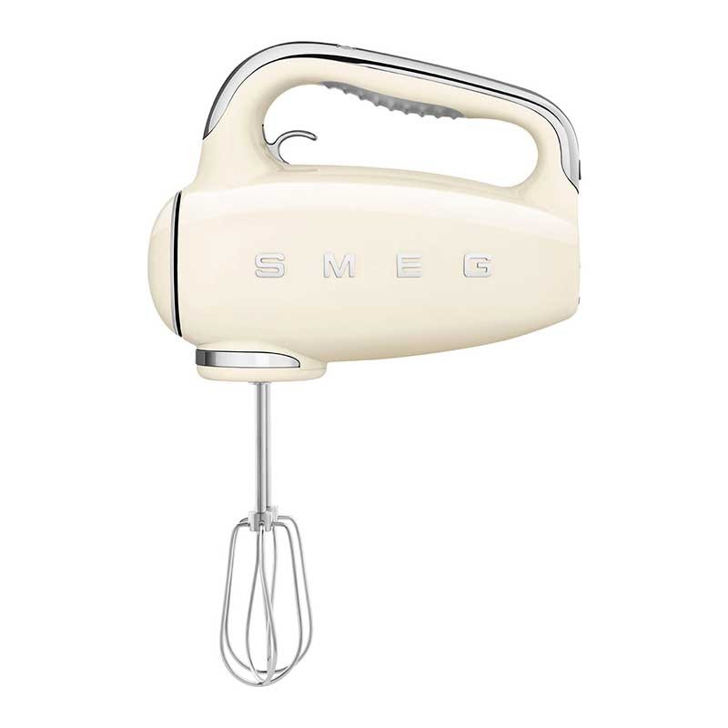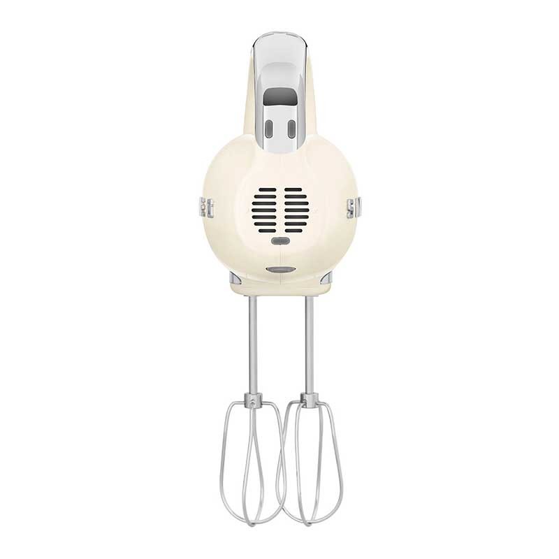 Smeg 50's Estilo acabamento creme brilho batedeira elétrica com 250 W de potência, 9 níveis de velocidade e função turbo.