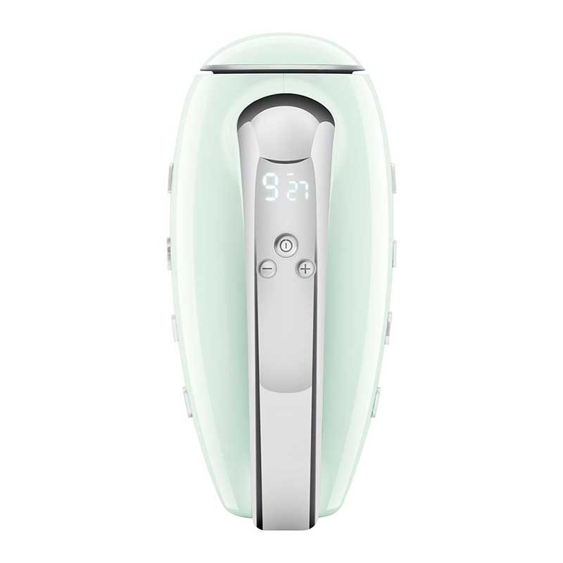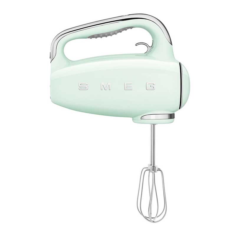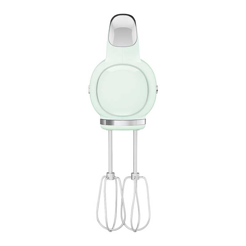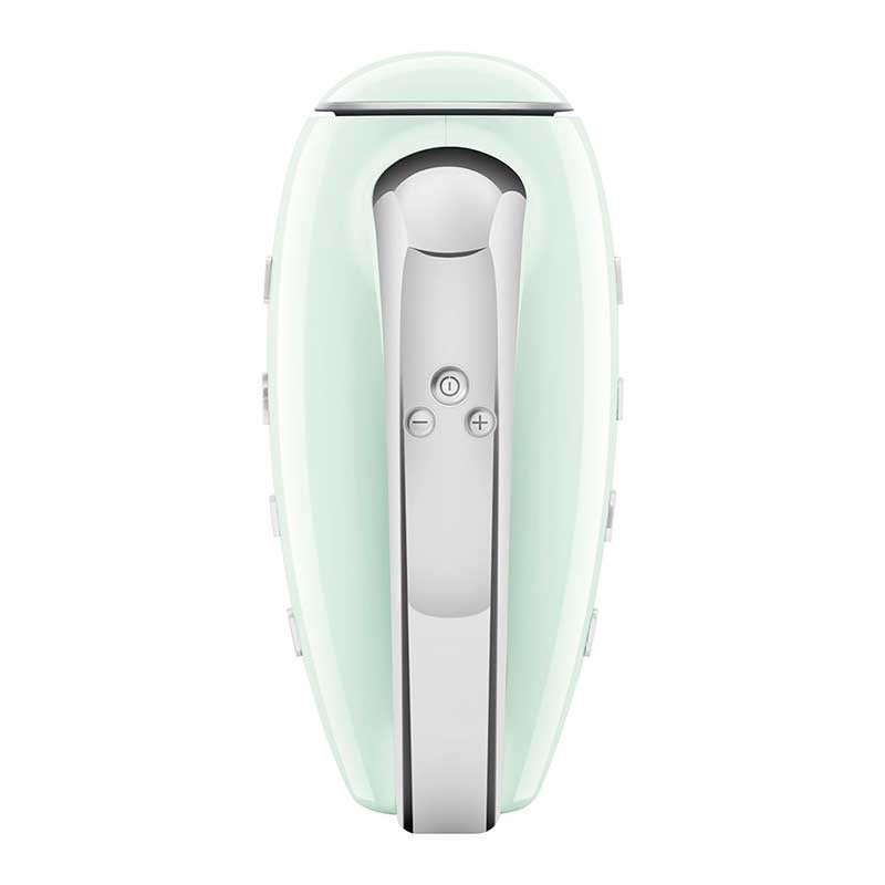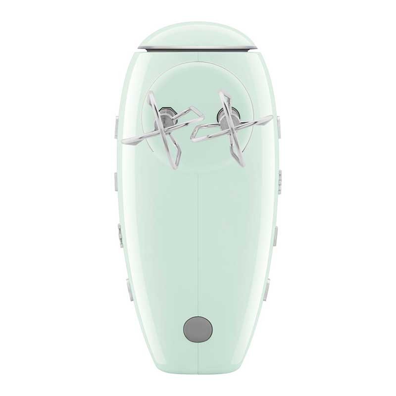 Smeg 50's estilo Batedeira Elétrica Acabamento verde água brilho com 250 W de potência, 9 níveis de velocidade e função turbo.