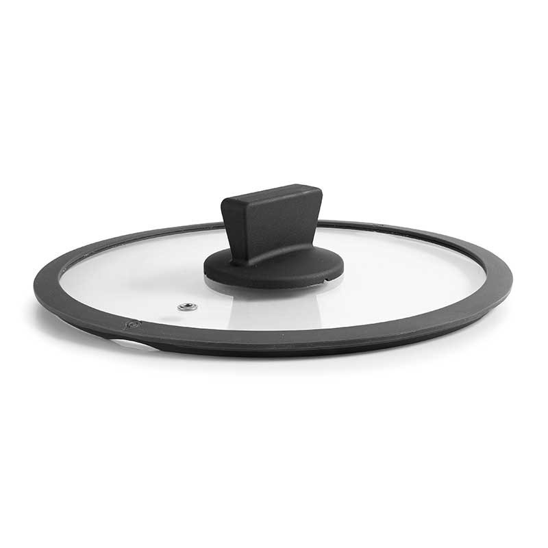 Tampa de vidro temperado reforçada com um aro protetor de silicone anti-impacto e uma válvula de saída de vapor. Compatível com peças da gama Titanium PRO Lacor.