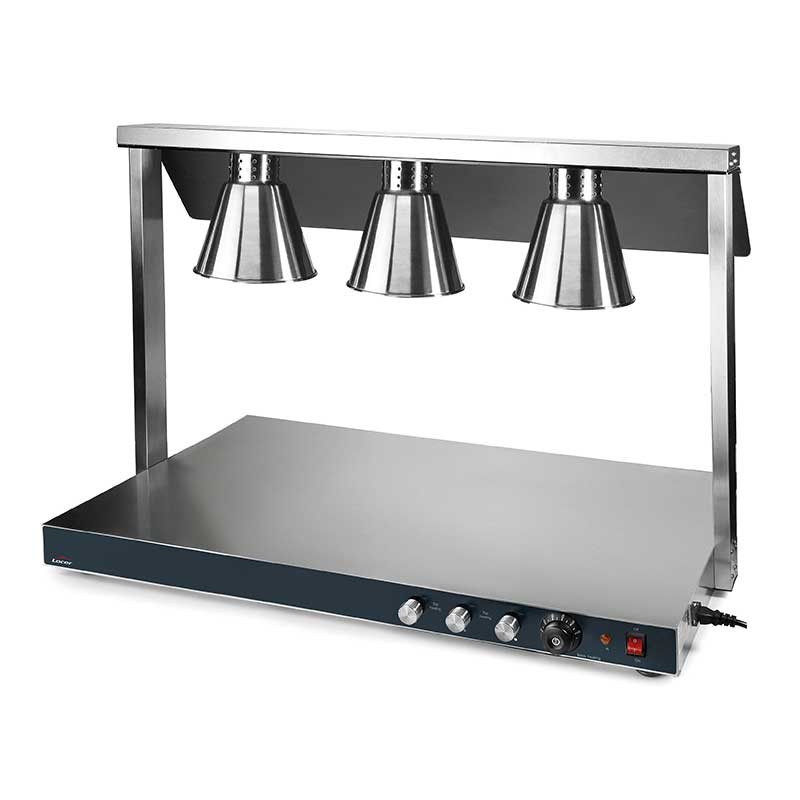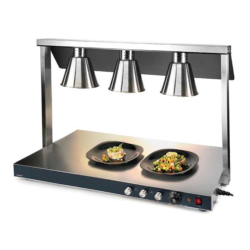Placa de aquecimento elétrico de aço inoxidável mais de 3 lâmpadas de halogéneo na parte superior para obter uma temperatura homogénea.
