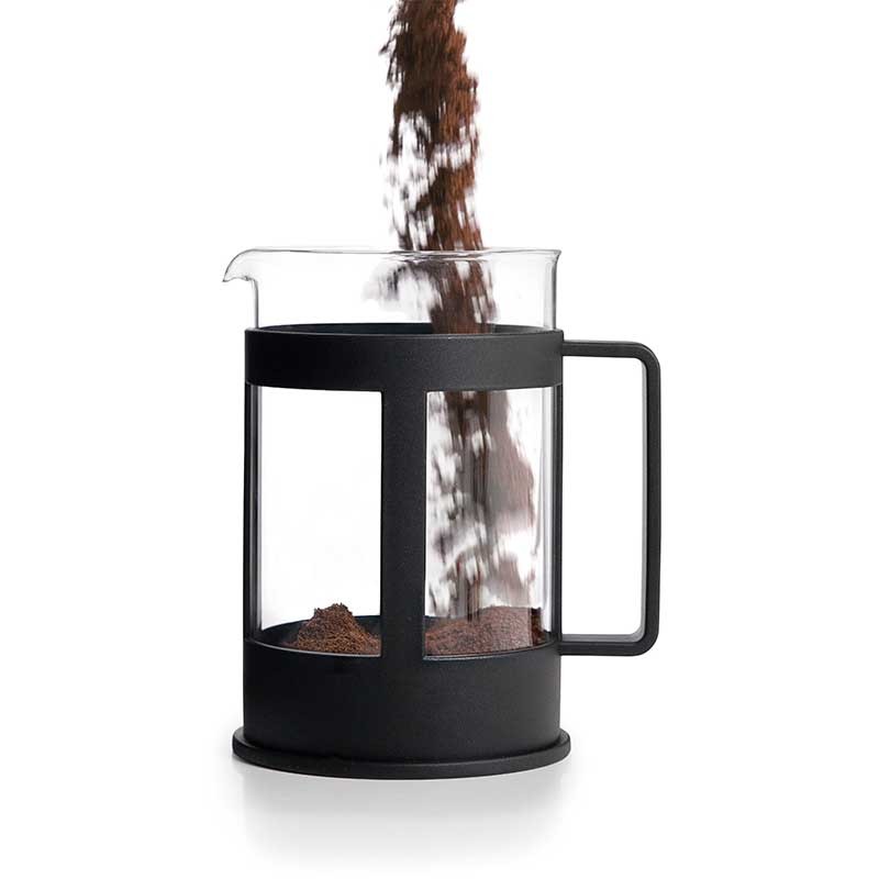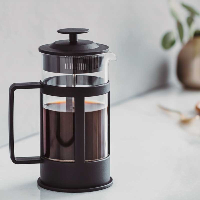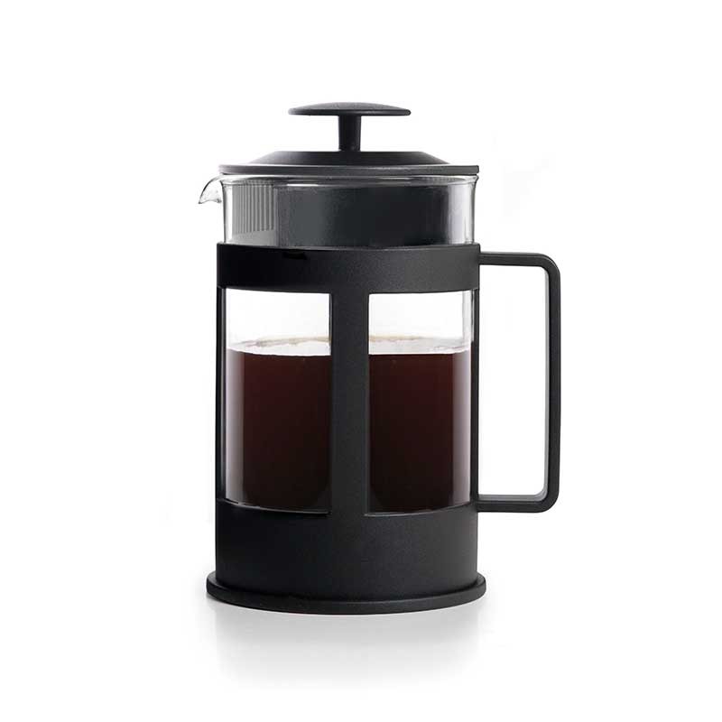Cafeteira de êmbolo modelo Black fabricada em vidro borossilicato, polipropileno e filtro de aço inoxidável 18/10.