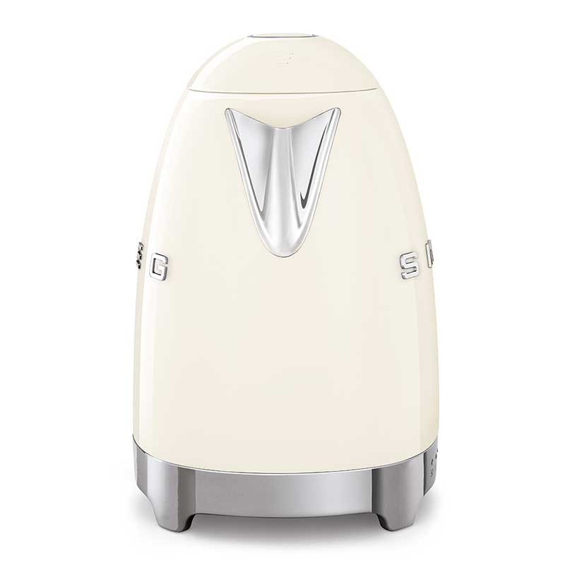 As chaleiras Smeg com corpo de aço inoxidável são fáceis, seguras e confiáveis, com uma capacidade de 1,7 litros e uma base sem fios que o torna um aparelho prático e funcional.