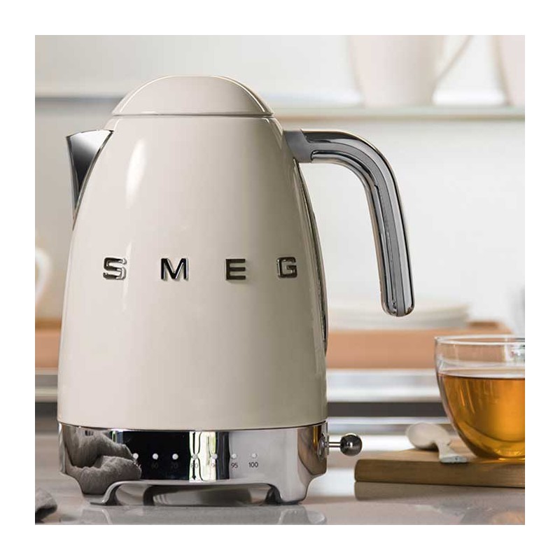 A chaleira de temperatura variável foi criada para os verdadeiros amantes do chá, onde a precisão da temperatura é tão importante. A chaleira de temperatura variável Smeg permite que você escolha entre uma variedade de opções entre 50 ° e 100 ° C para personalizar a temperatura da água, criando a xícara de chá perfeita.