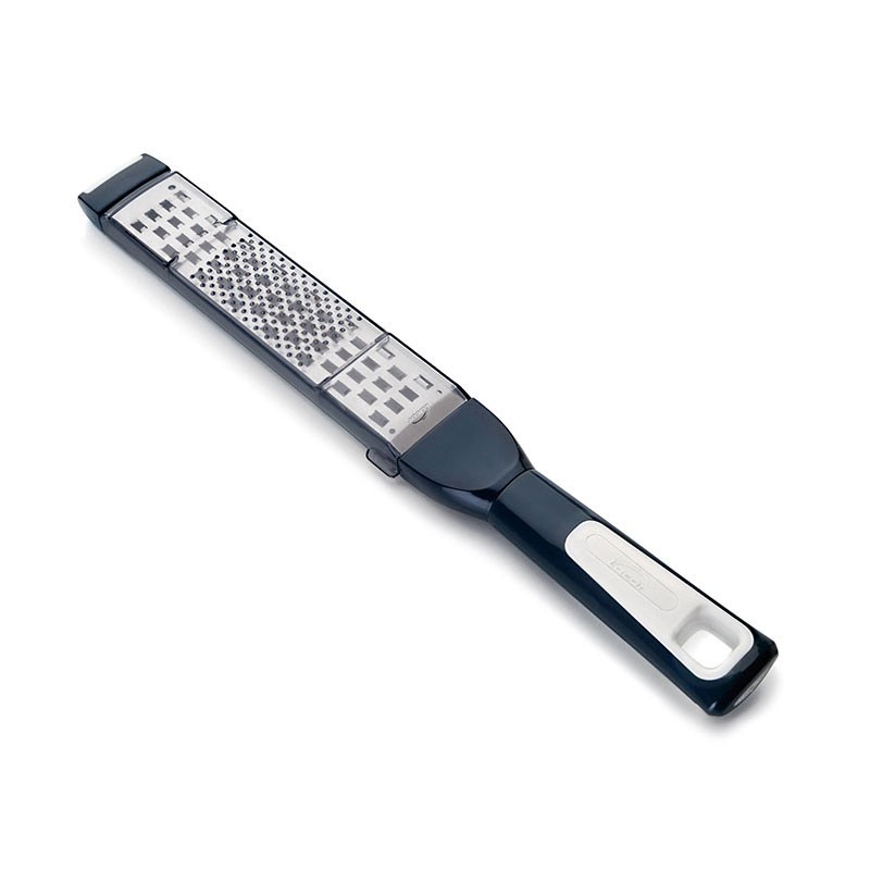 Ralador de mão 2 em 1 para cozinha com uma cara para um ralado fino e outra cara para ralar mais grosso. Comprimento: 31 cm