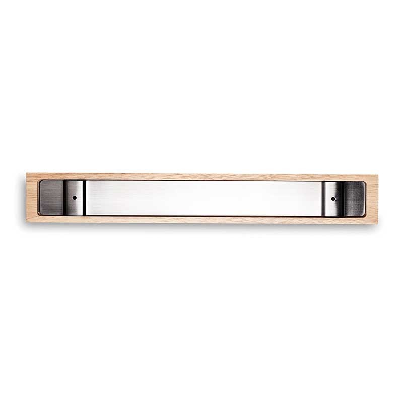 Elegante suporte magnético para facas de cozinha fabricado em madeira de borracha. Inclui todo o necessário para sua montagem.