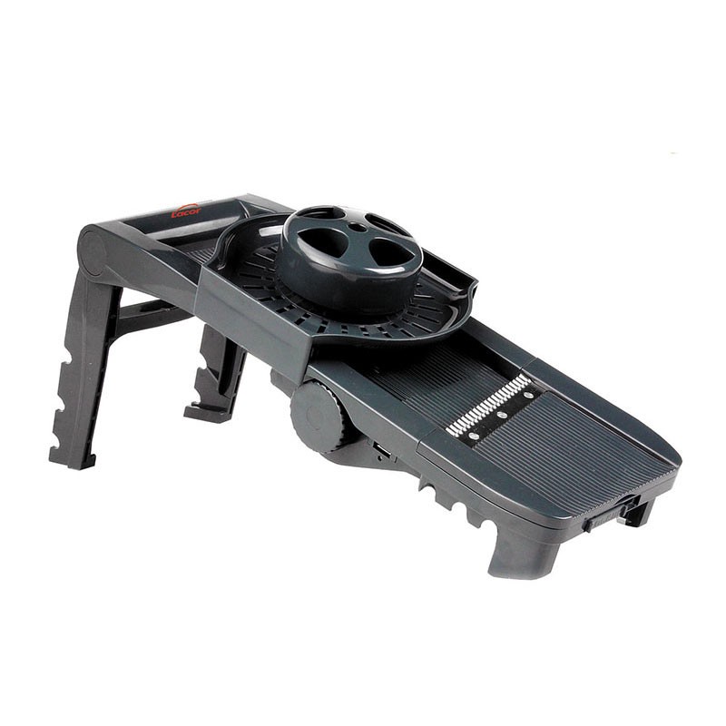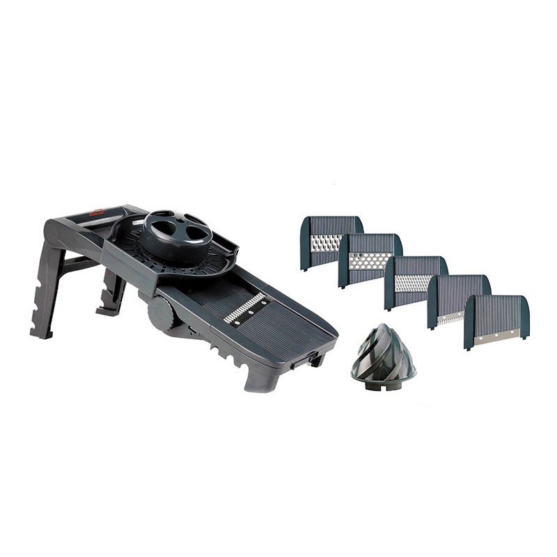 Bandolim com 5 lâminas intercambiáveis de aço inoxidável e um espremedor de sumos, fabricada em plástico PLÁSTICO de grande resistência. Medidas: 14,5x34,5 cm