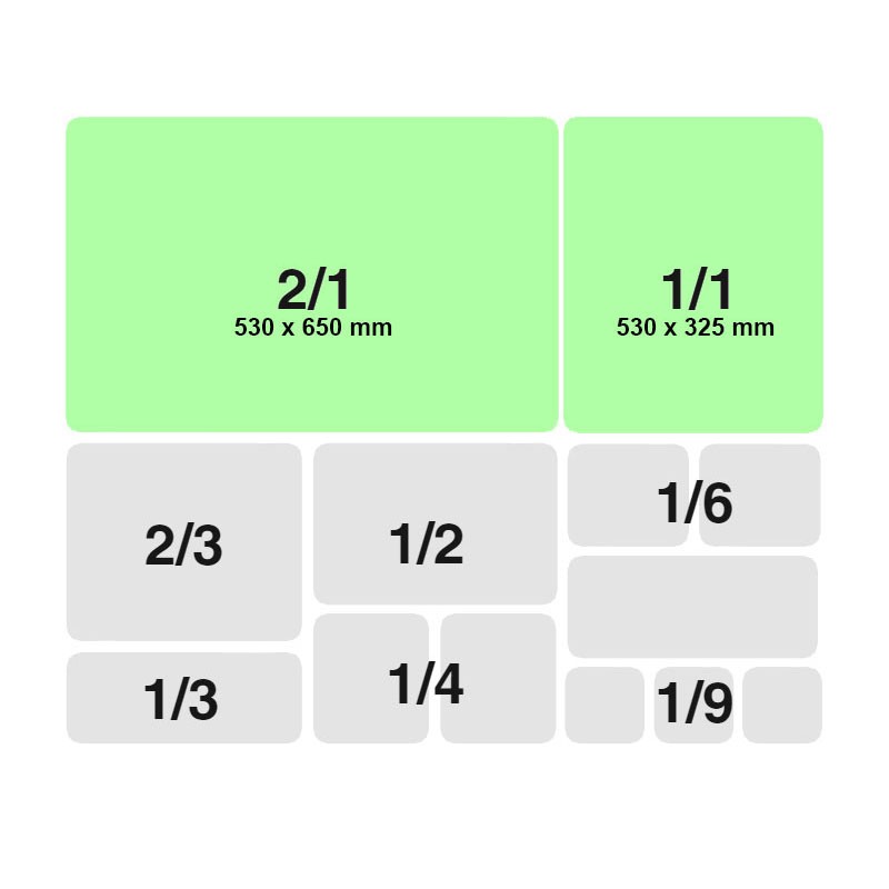 Este formato padrão pré-estabelecido, permite a organização e otimização do espaço em equipamentos de cozinha, tais como câmaras frigoríficas, fornos, prateleiras, carrinhos porta-bandejas, carros e tanques de limpeza para máquinas de lavar industriais, equipamentos de transporte de calor para buffets, etc.