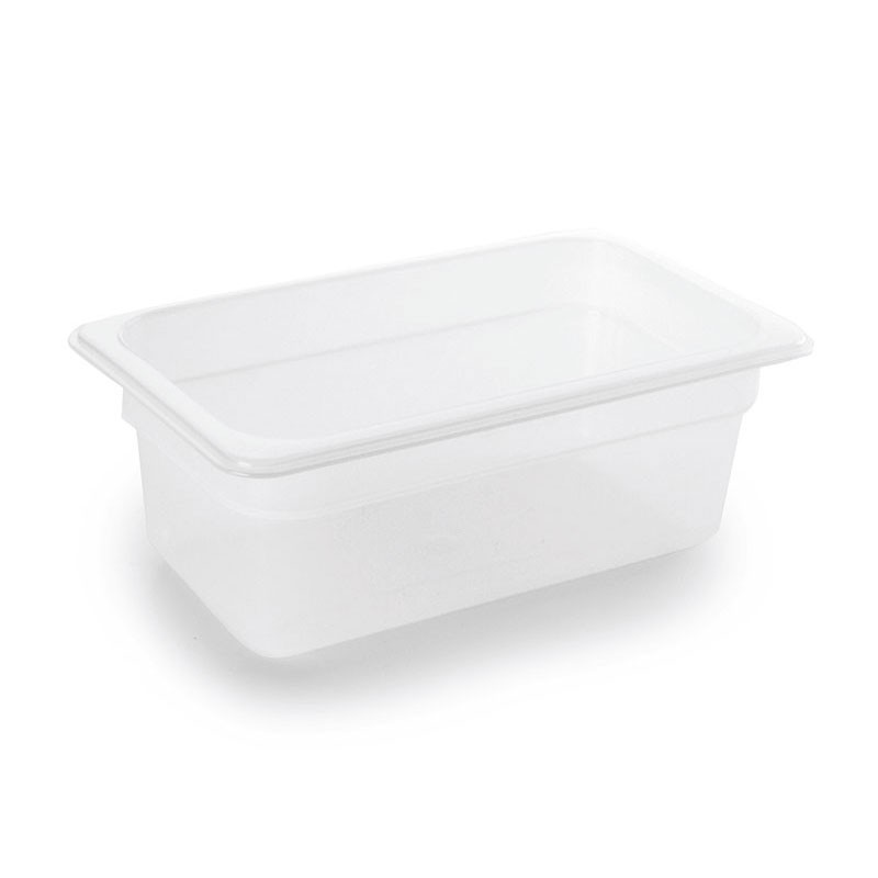 Balde tamanho GN 1/3 de 176x325 mm para cozinhas profissionais fabricada em polipropileno de alta qualidade, indeformável e leve.