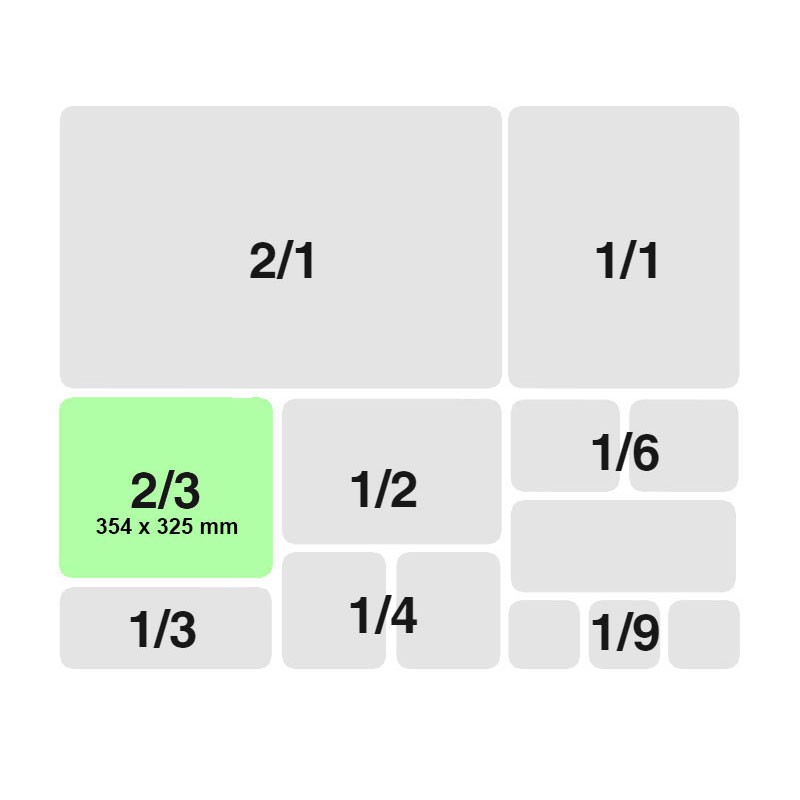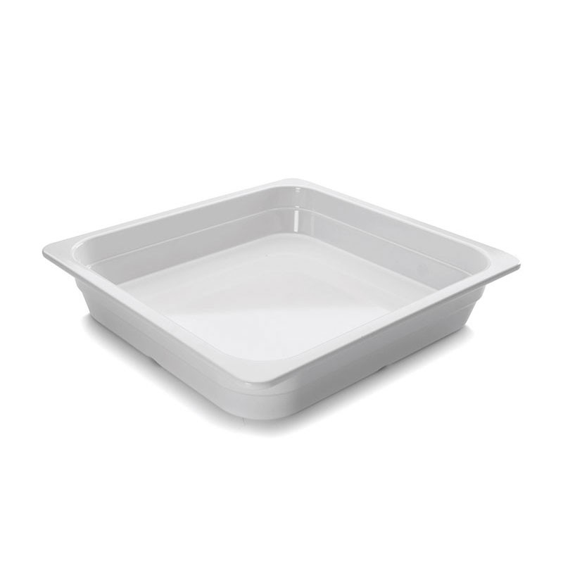 Balde tamanho GN 2/3 de 354x325 mm para cozinhas profissionais fabricada em resina sintética branca de alta qualidade e resistência.