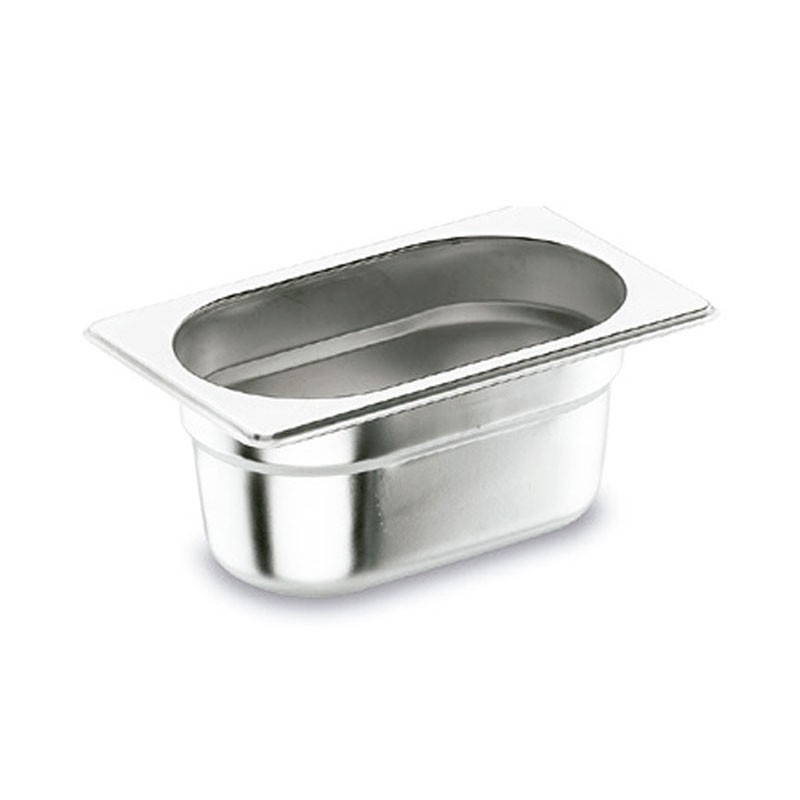 Balde ou caixa tamanho GN 1/4 de 265x162 mm para cozinhas profissionais fabricada em aço inoxidável 18/10.