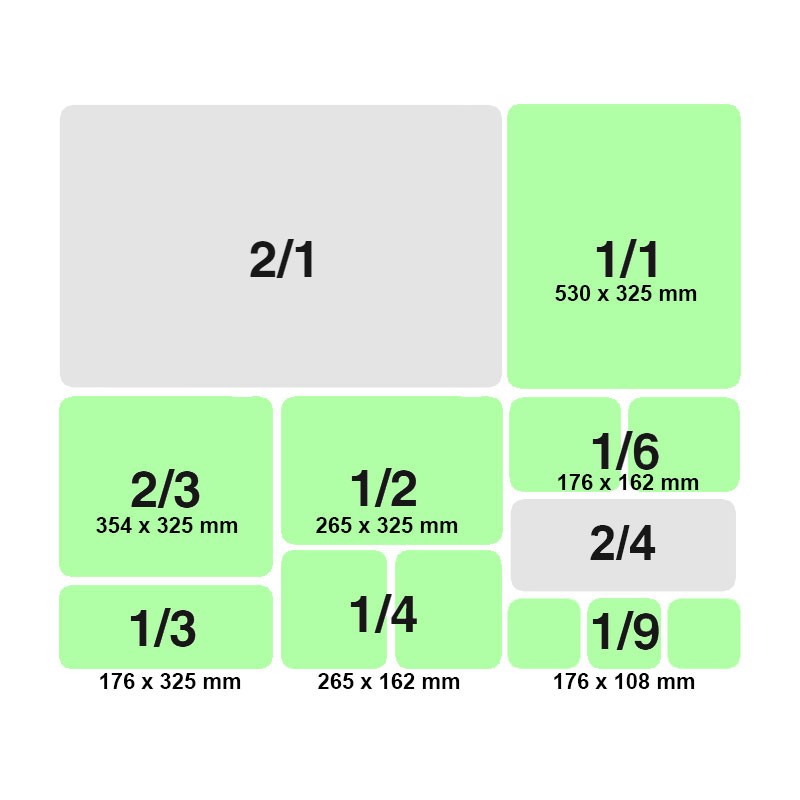 Este formato padrão pré-estabelecido, permite a organização e otimização do espaço em equipamentos de cozinha, tais como câmaras frigoríficas, fornos, prateleiras, carrinhos porta-bandejas, carros e tanques de limpeza para máquinas de lavar industriais, equipamentos de transporte de calor para buffets, etc.