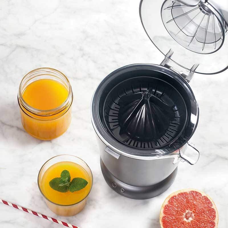 Espremedor totalmente automático 60W. Graças à sua inovadora tecnologia extrai o sumo da fruta com um simple toque no botão.