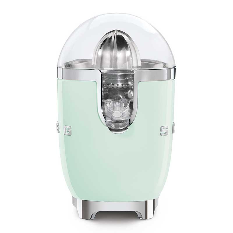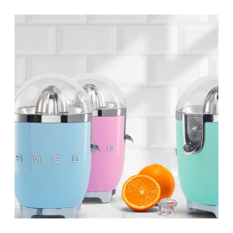 O espremedor de citrinos Smeg possui as linhas curvas especiais da Gama 50's Style e está disponível em uma ampla gama de cores.