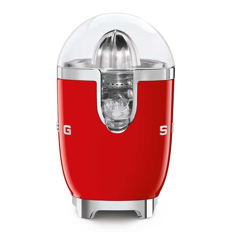 O espremedor de citrinos Smeg possui as linhas curvas especiais da Gama 50's Style e está disponível em uma ampla gama de cores.