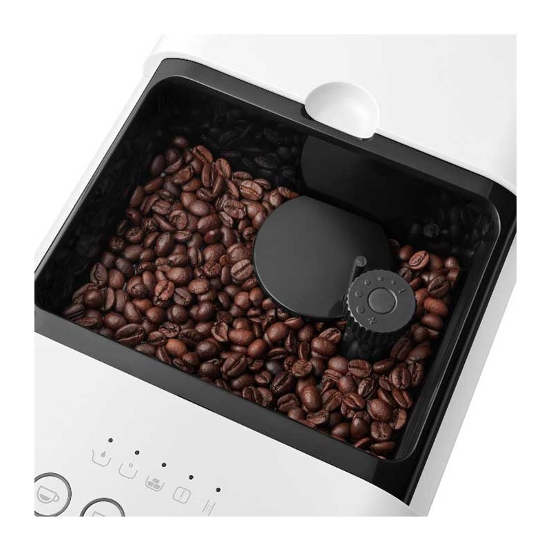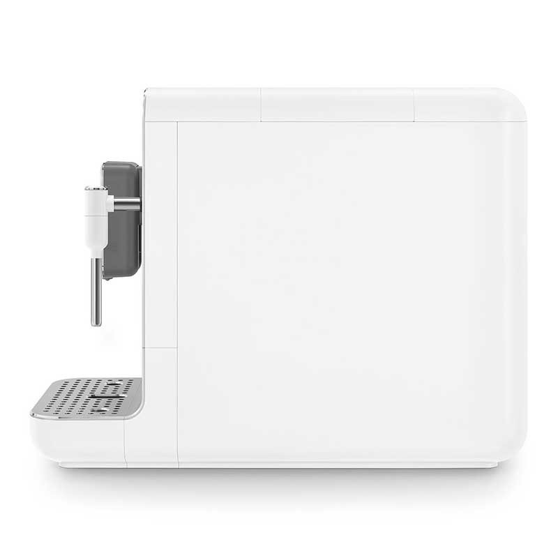 Máquina de café expresso superautomática com vaporizador Smeg 50's Style acabamento branco fosco com 19 bares de pressão e sistema de aquecimento Thermoblock.
