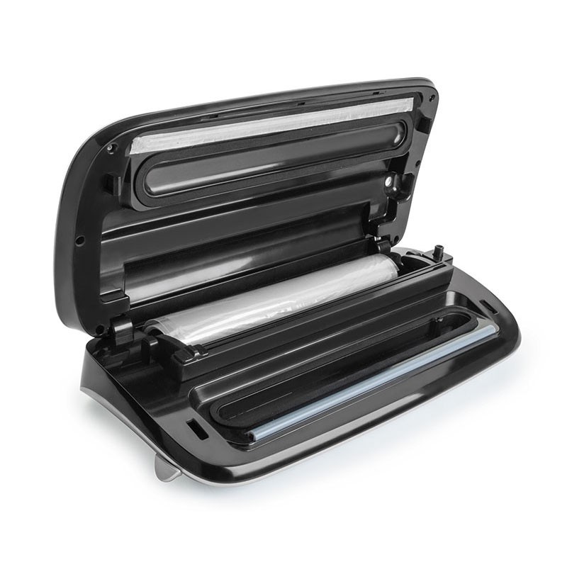 A máquina de vácuo MAXI conta com dois tipos de sucção, para produtos secos ou úmidos, tais como molhos ou líquidos, e com duas velocidades: suave (0.60 bar) e turbo (0.80 bar). Oferece-Nos a possibilidade de realização de sacos (inclui 1 rolo de plástico)