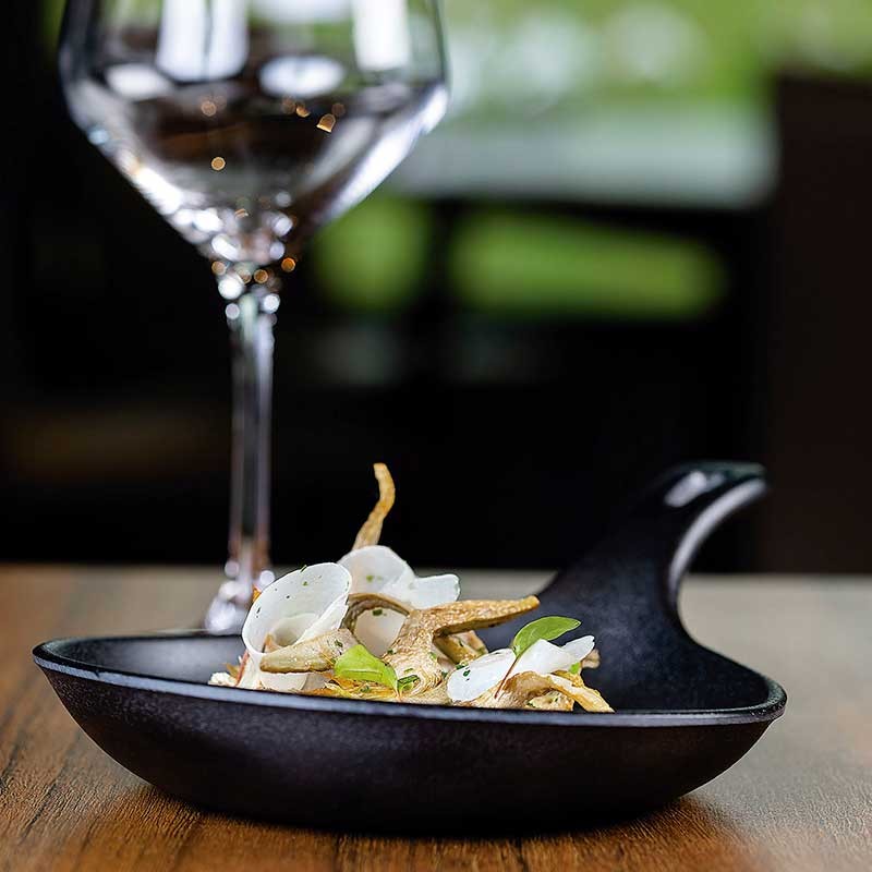 Mini sertã de resina modelo Magma com aspecto natural similar ao ferro fundido. Ideal para servir e apresentar os pratos mais esquisitos.