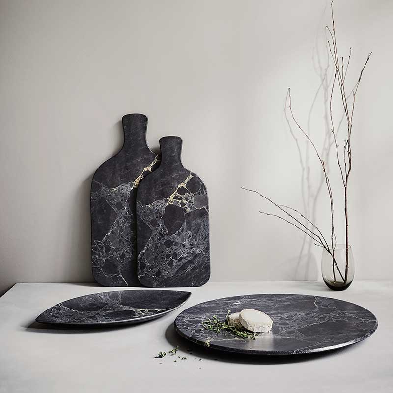 Bandeja rectangular modelo Stone fabricada en resina de alta qualidade com um aspeto elegante, a imitar o mármore.