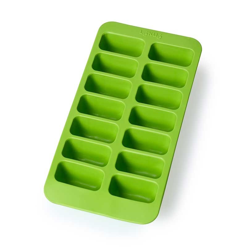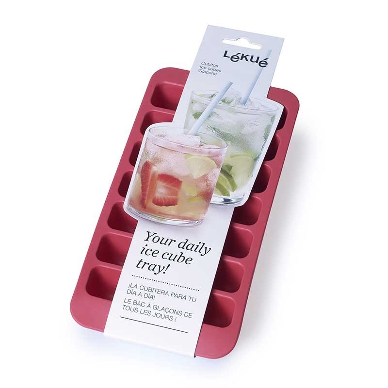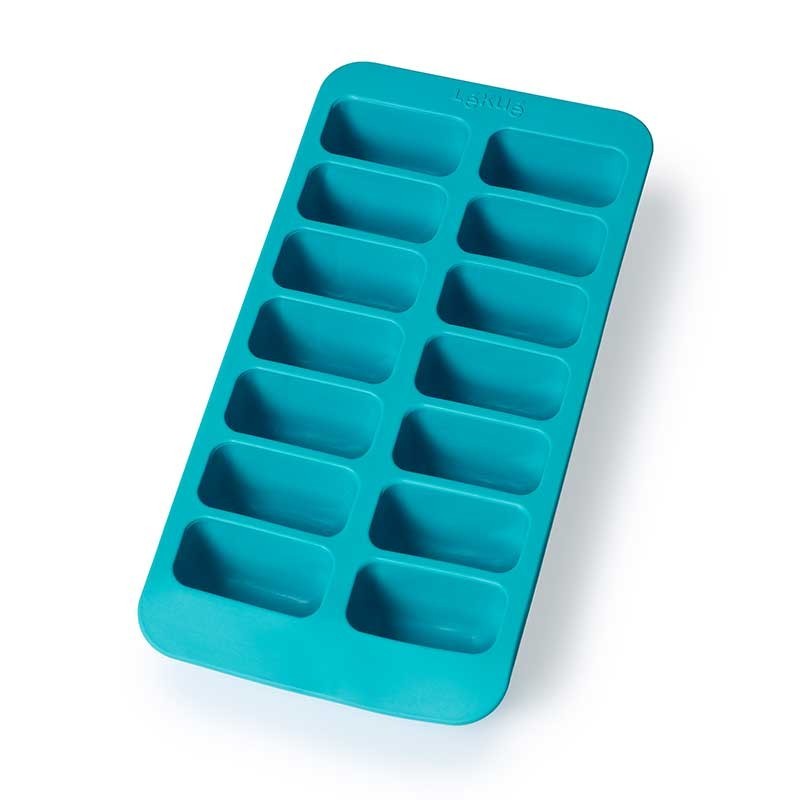Bolsa de borracha flexível que facilita o desmoldado para fazer 14 cubos de gelo com forma retangular.