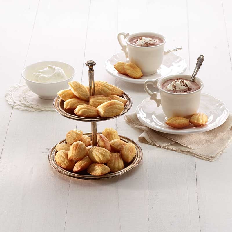 Molde de silicone flexível e anti-aderente com 20 cavidades para preparar e assar mini muffins com forma de concha marinha.