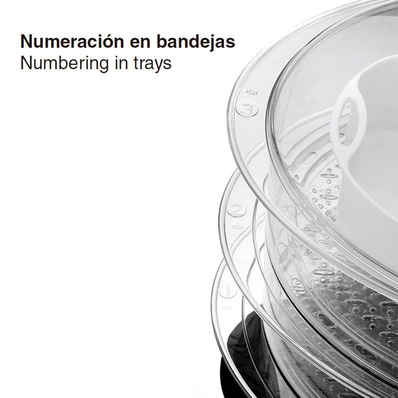 O cocedor de vapor elétrico que te propomos aqui, dispõe de 3 cestas, que permitem fazer até 3 pratos ao mesmo tempo. Programa a duração da cozedura e do resto se encarregará este pequeno e prático aparelho.