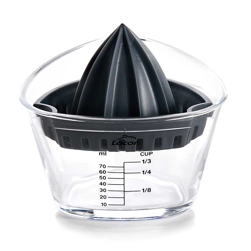 Mini espremedor de cozinha ideal para espremer limões ou limas e servir directamente o suco sobre os alimentos.