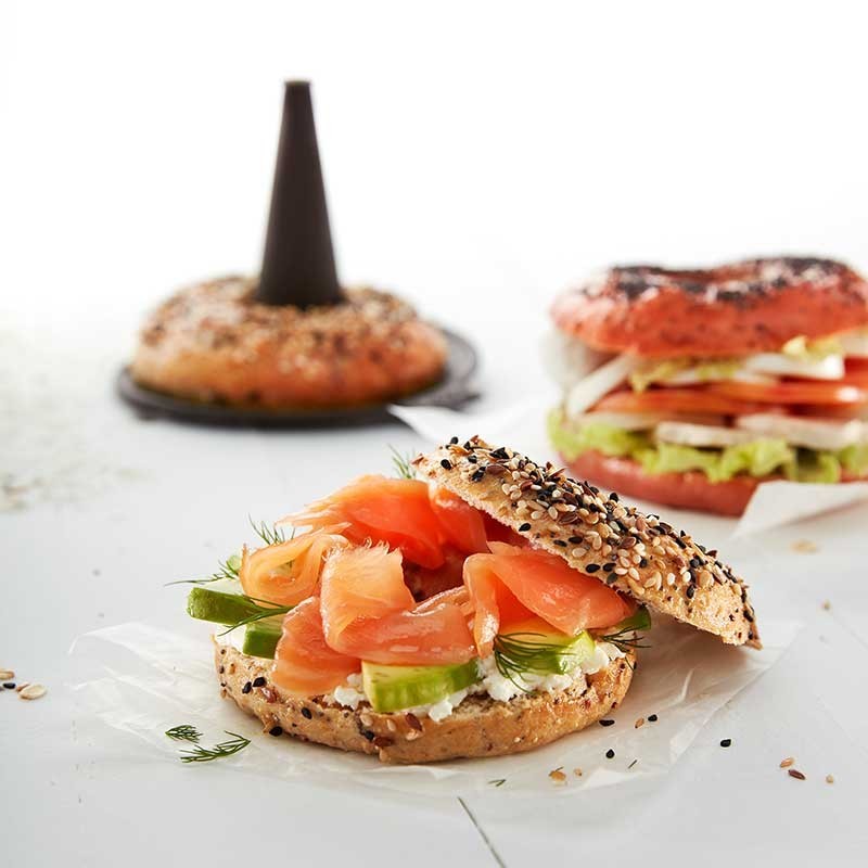 Você pode colocar um toque aos seus Bagels decorándoles com gergelim ou sementes de papoula, por exemplo, ou até mesmo sal vulcânico. Incorpora também legumes à massa para dar uma cor diferente, inspire-se com as nossas receitas de Bagel com tomates secos ou espinafre.