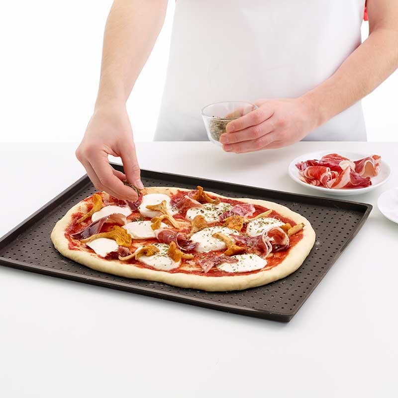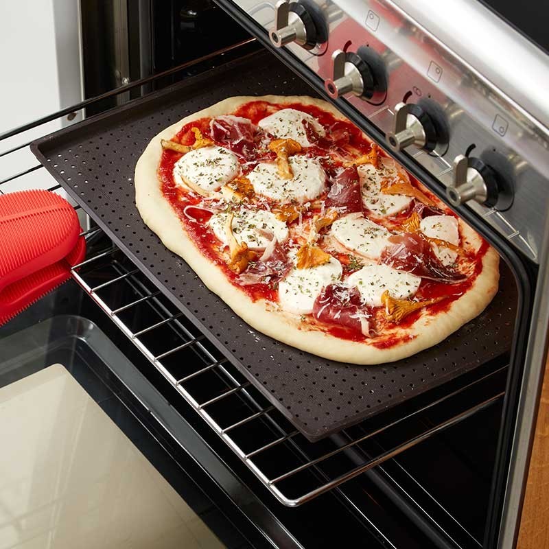 Obtenha o acabamento crocante que você sempre quis para suas pizzas! O segredo é cozinhar! O Pizza Mat, graças à sua microperforado obter um resfriamento uniforme, evitando que se reblandezca, e permitindo que toda a massa se crie uma crosta crocante.