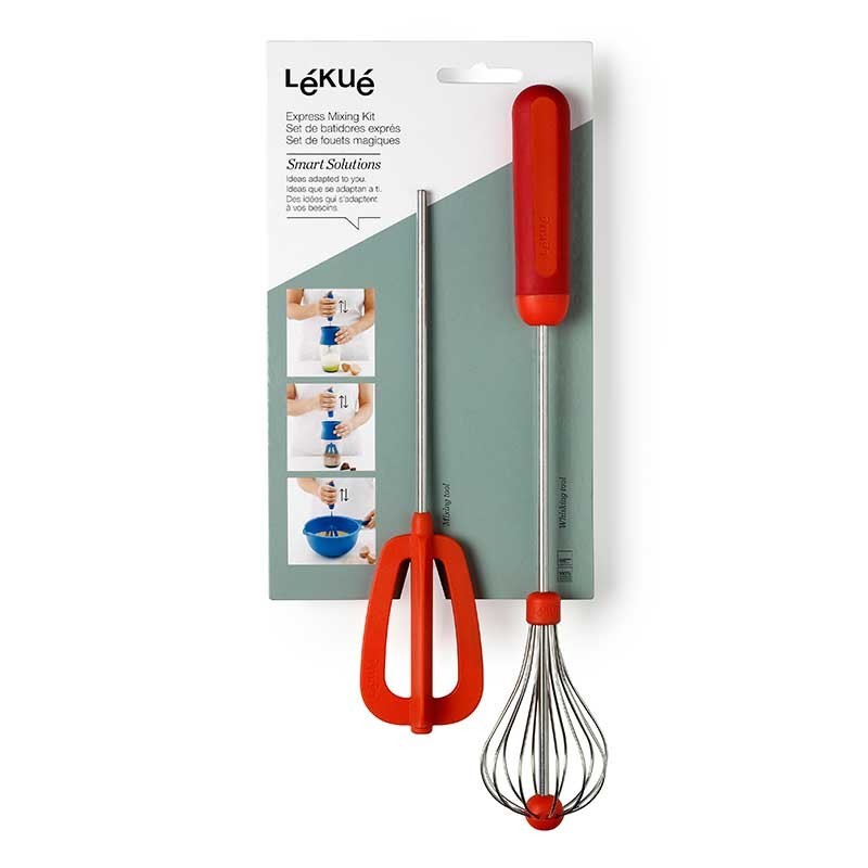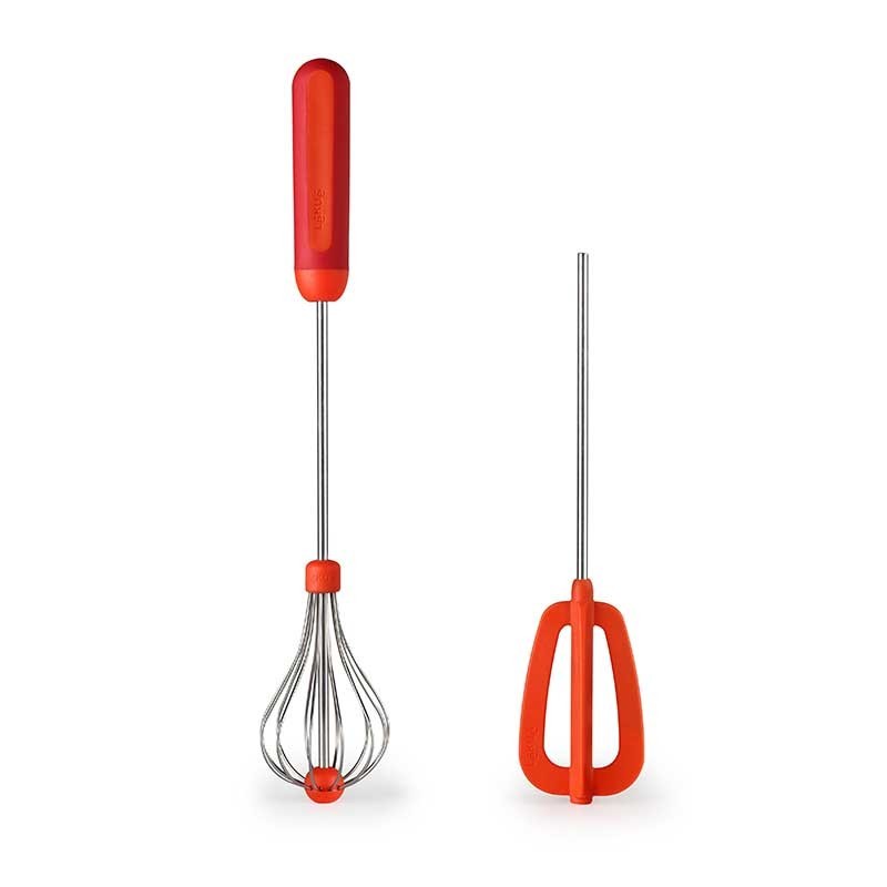 Set de batedores de cozinha com 2 cabeças intercambiáveis para misturar e bater diferentes ingredientes como creme de leite, claras, merengue, etc.