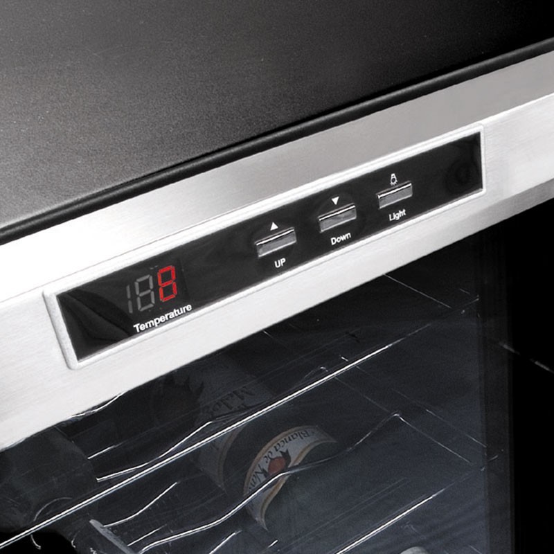 A temperatura no interior do armário refrigerador depende da temperatura ambiente no exterior do armário. Para vinhos tintos faixa de temperatura ideal é entre os 14 e os 16ºC, enquanto que para vinhos brancos ou espumantes, recomenda-se que estejam entre os 6 e os 10.5 ºC. A temperatura interna pode ser definida facilmente através do controle eletrônico de temperatura na parte superior do armário.