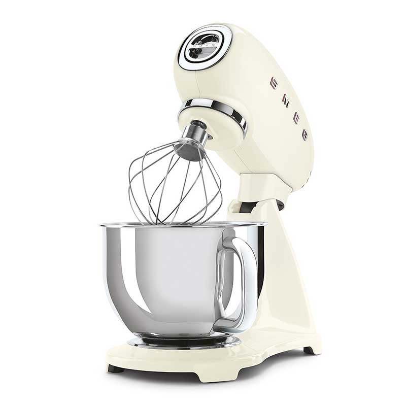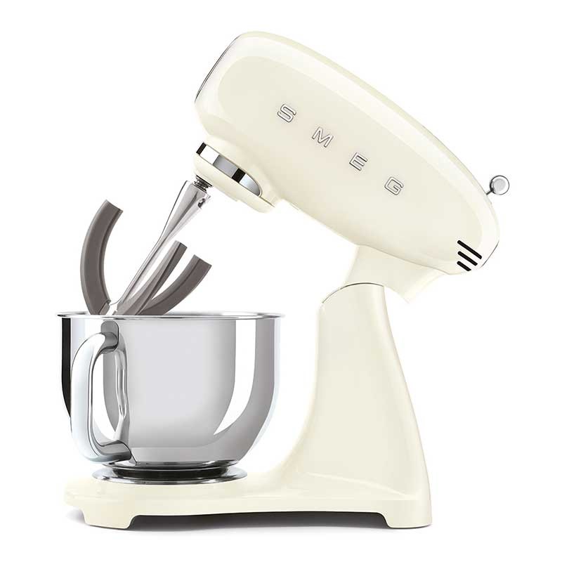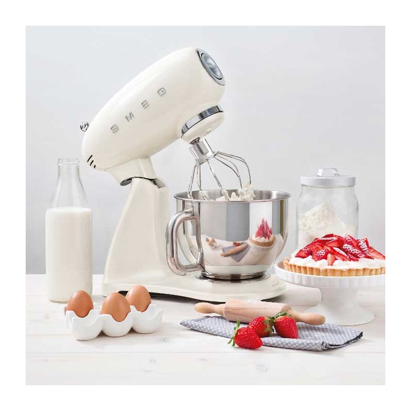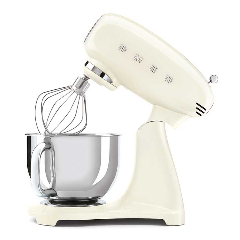 Smeg 50's estilo Full Color acabamento preto brilho batedeira com corpo em alumínio fundido, 800 W de potência e 10 velocidades.