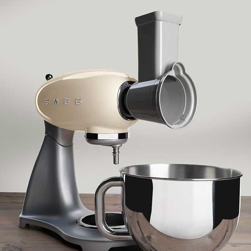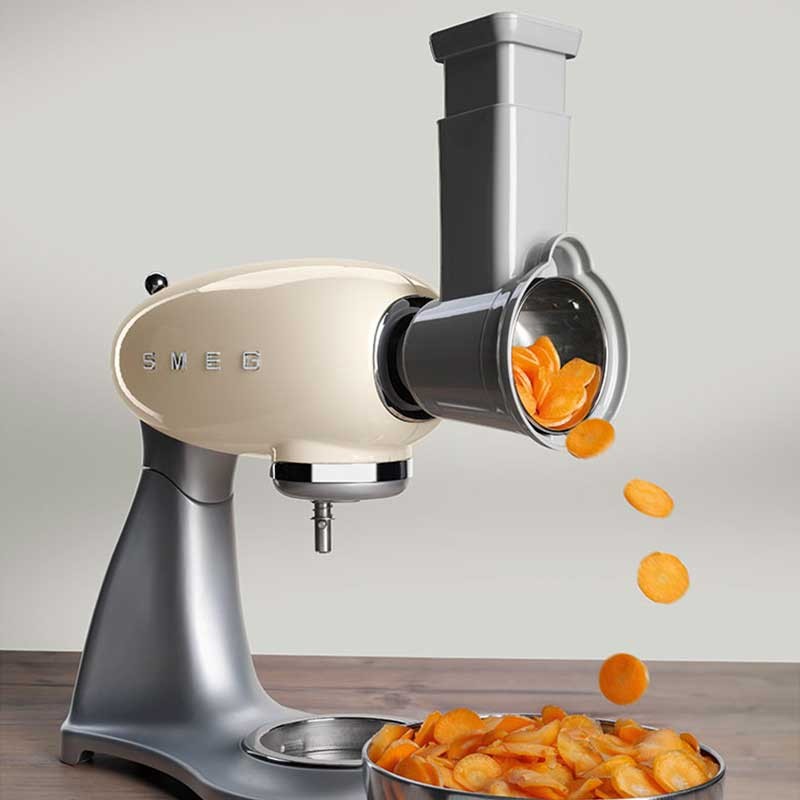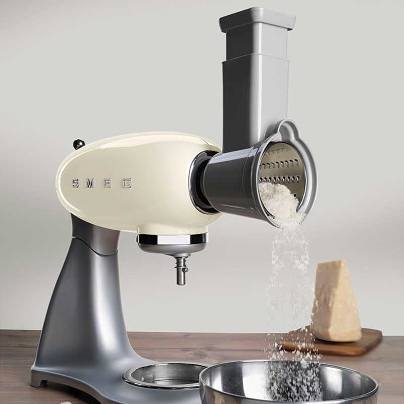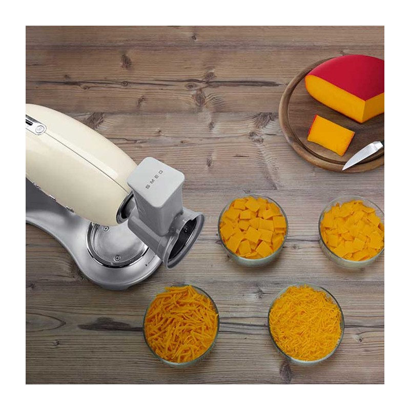 Pack de 4 Acessórios raladores e laminadores compatíveis com os robôs de Cozinha Smeg 50's Style modelo SMF02 e SMF03.