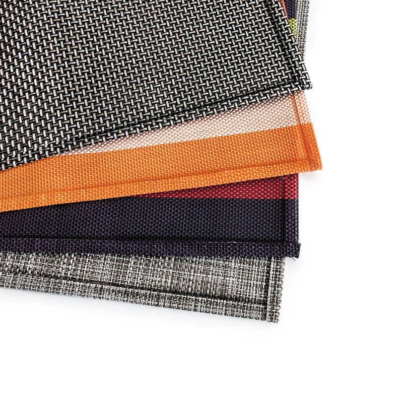 Individual de 45x30 cm fabricado com 75% de PVC e 25% poliéster na cor cinza escuro, modelo Lanta.