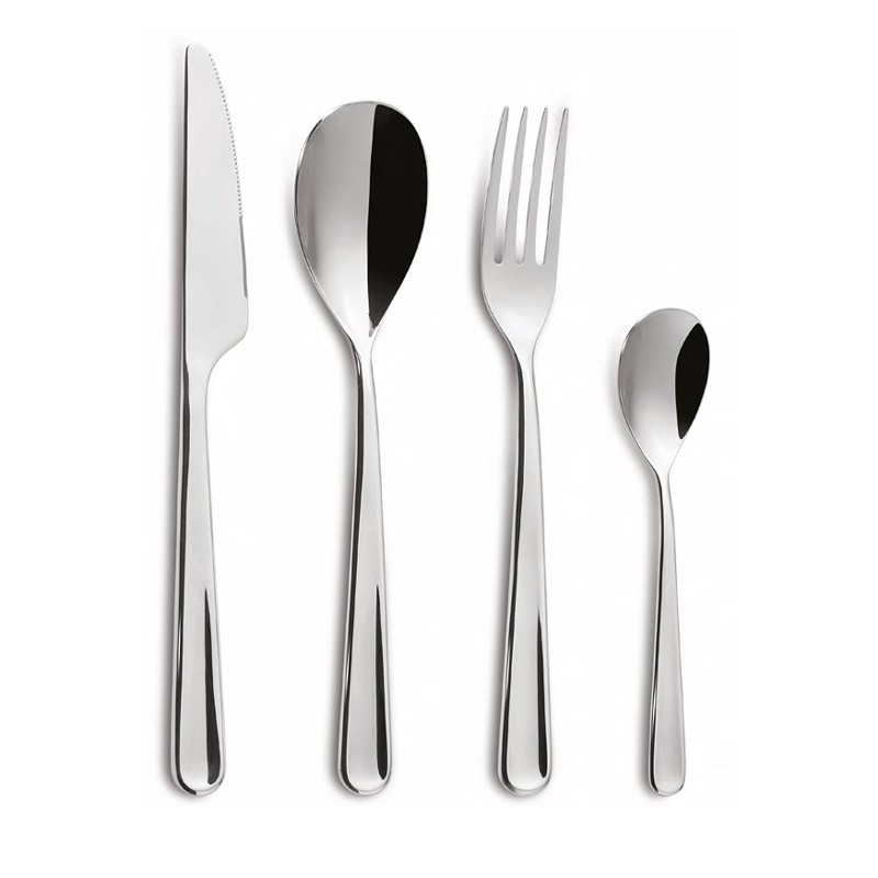 Conjunto de 24 talheres Comas série London fabricados em aço inoxidável 18/10 de 4 mm de espessura.