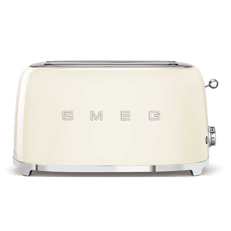 Torradeira Smeg 50's Style com corpo em aço inoxidável Cor Creme brilho com 6 níveis de aquecimento e 2 ranhuras para 4 torradas.