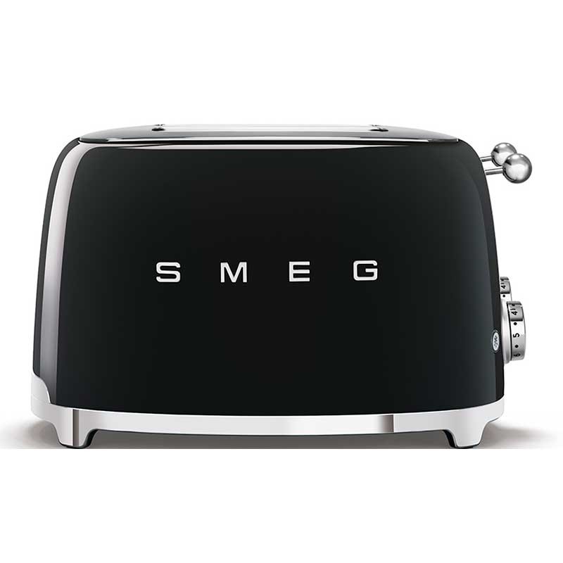 Torradeira Smeg 50's Style com corpo em aço inoxidável Cor preto brilho com 6 níveis de aquecimento e 4 ranhuras para 4 torradas.