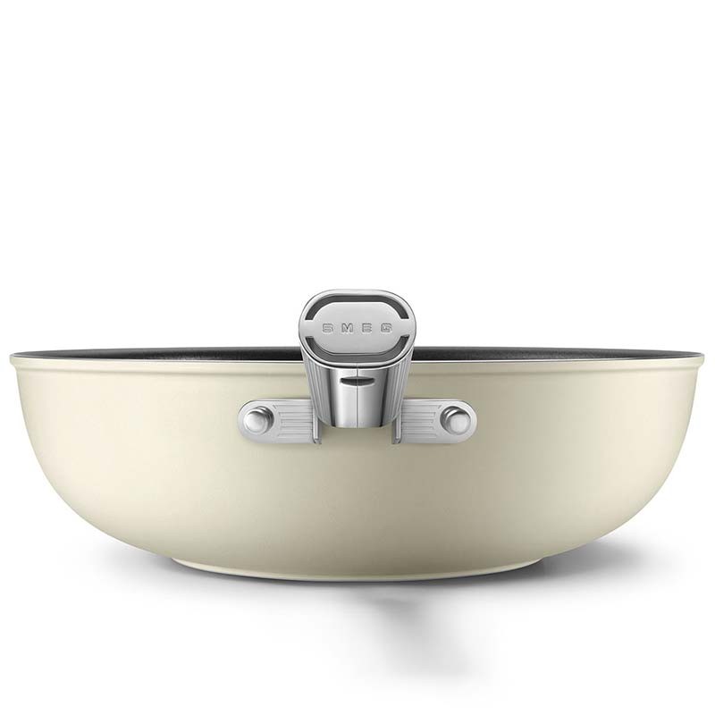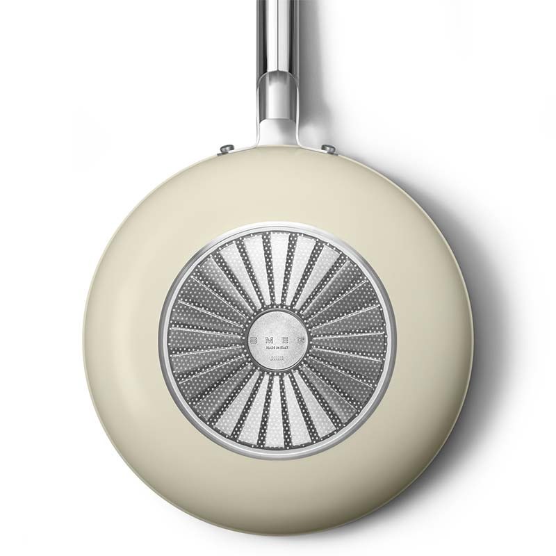 Onsok antiaderente Smeg 50's Style com 30 cm de diâmetro, corpo em alumínio forjado e acabamento exterior bege creme mate.