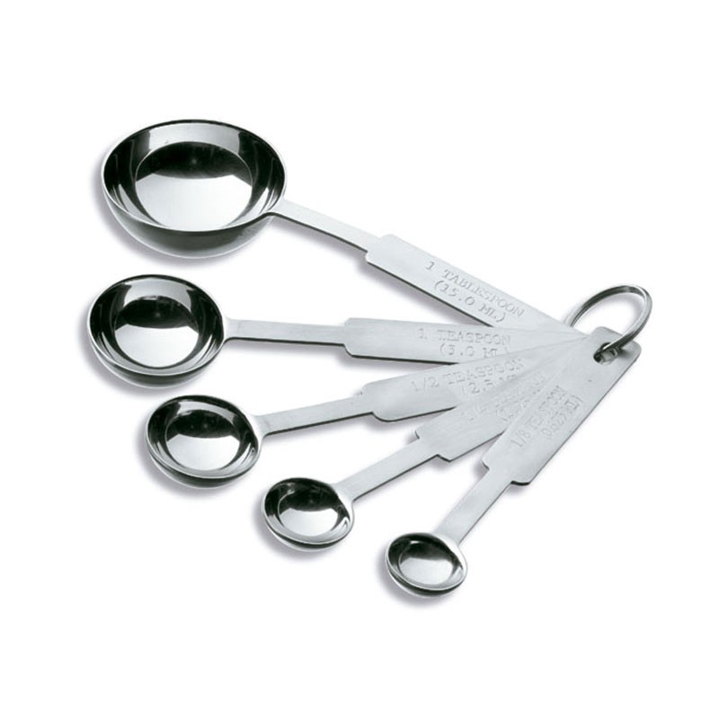 Expanda Jogo de 5 colheres medidoras de 0,62 / 1,25 / 2 / 5 / 15 ml fabricadas em aço inoxidável 18/10 de alta qualidade e resistência à corrosão.
